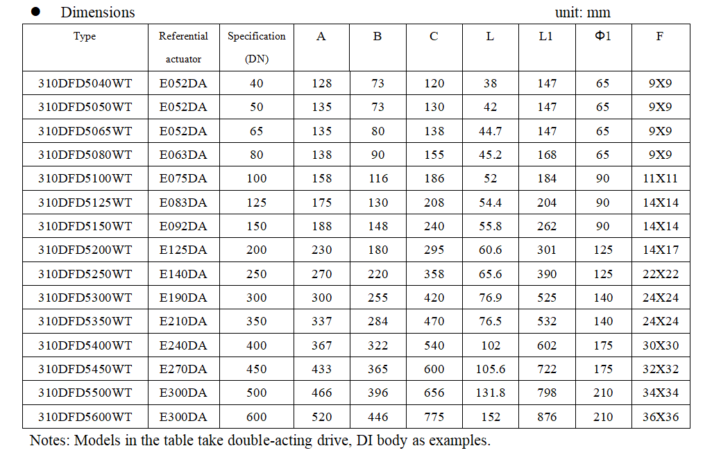 l Upper flange complies with standard ISO5211.