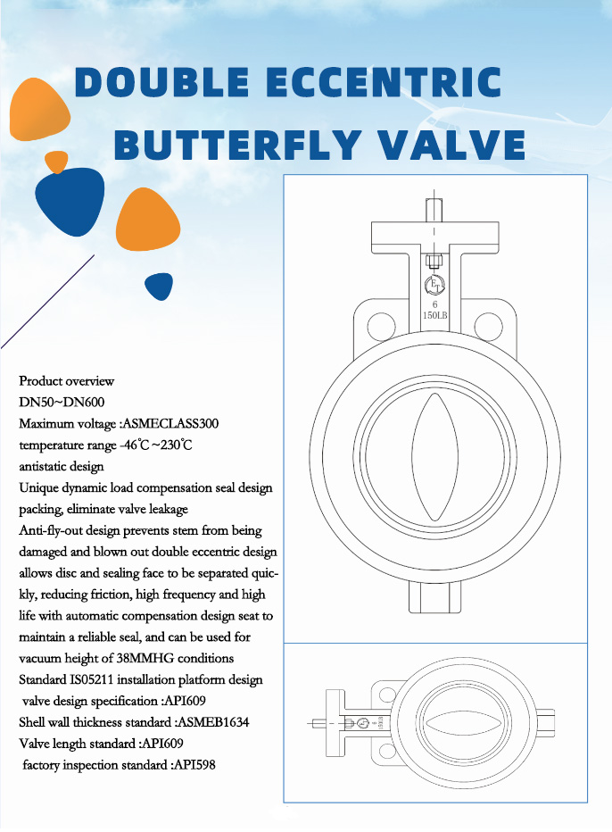 Anti-fly-out design prevents stem from being damaged and blown out double eccentric design allows disc and sealing face to be separated quickly, reducing friction, high frequency and high life with automatic compensation design seat to maintain a reliable seal, and can be used for vacuum height of 38MMHG conditions