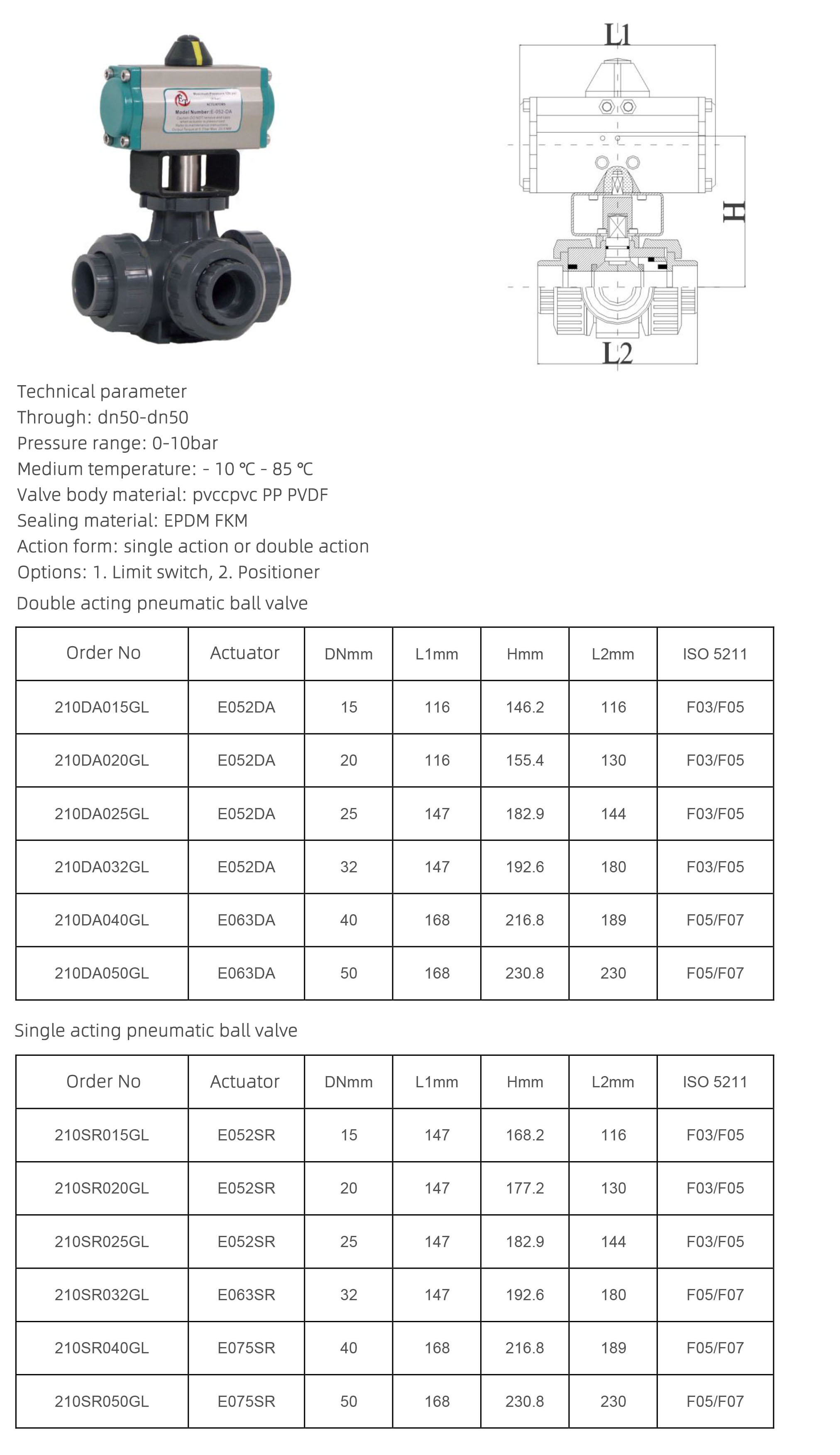 Options: 1. Limit switch, 2. Positioner