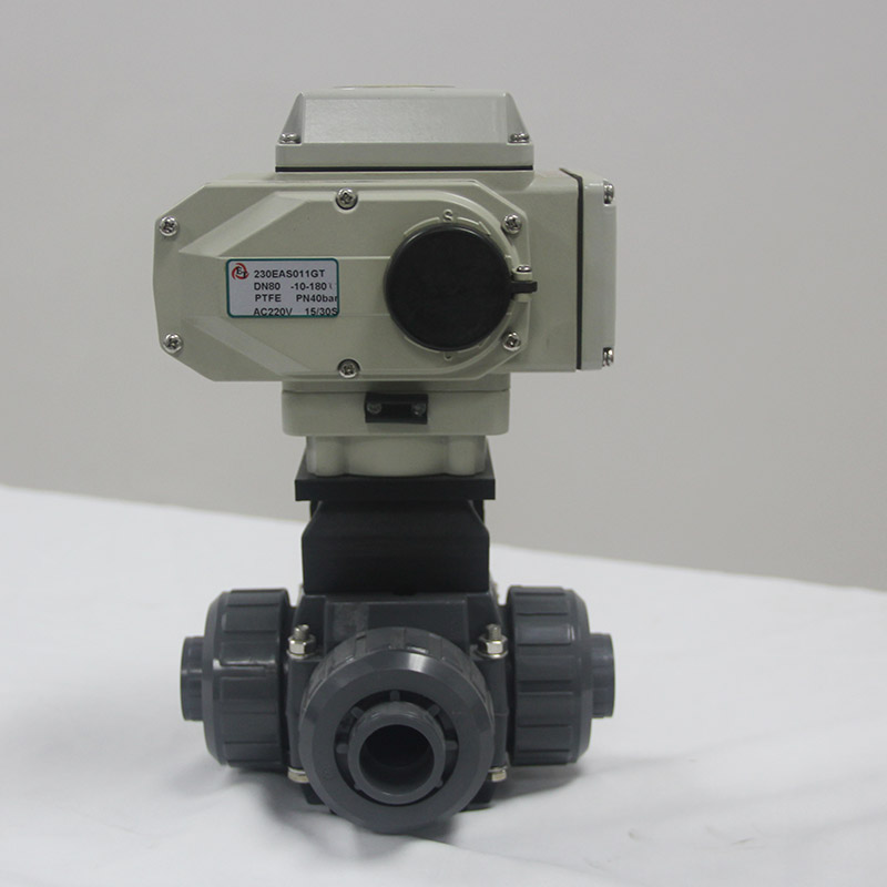 Elite valve electric three-way ball valve electric reversing DN50 electric three-way plastic ball valve T-type PVC adhesive thread ball valve