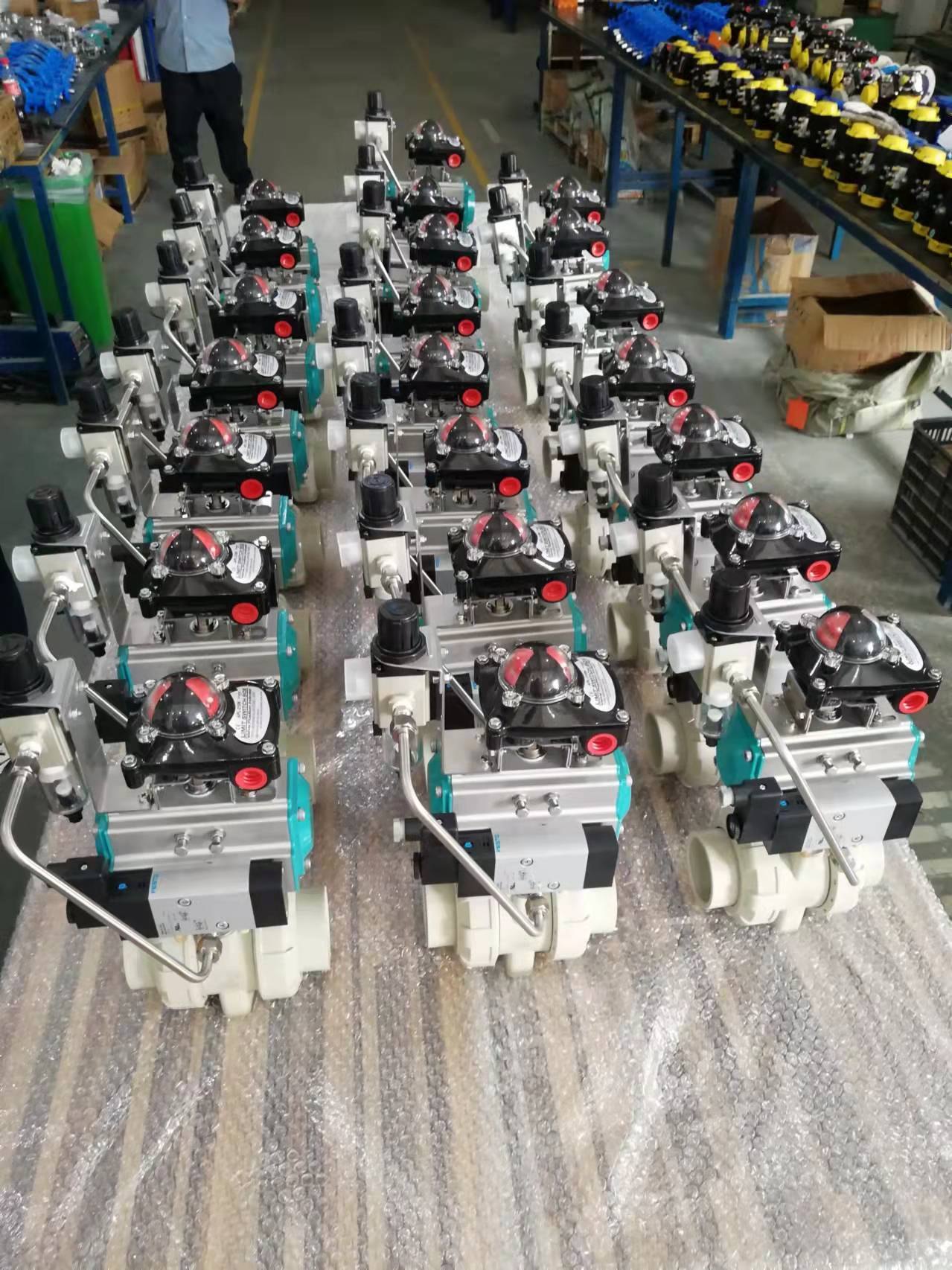 愛特閥門 氣動PPH/PPR球閥DN15-100耐酸堿塑料雙由令法蘭熱熔閥門球閥